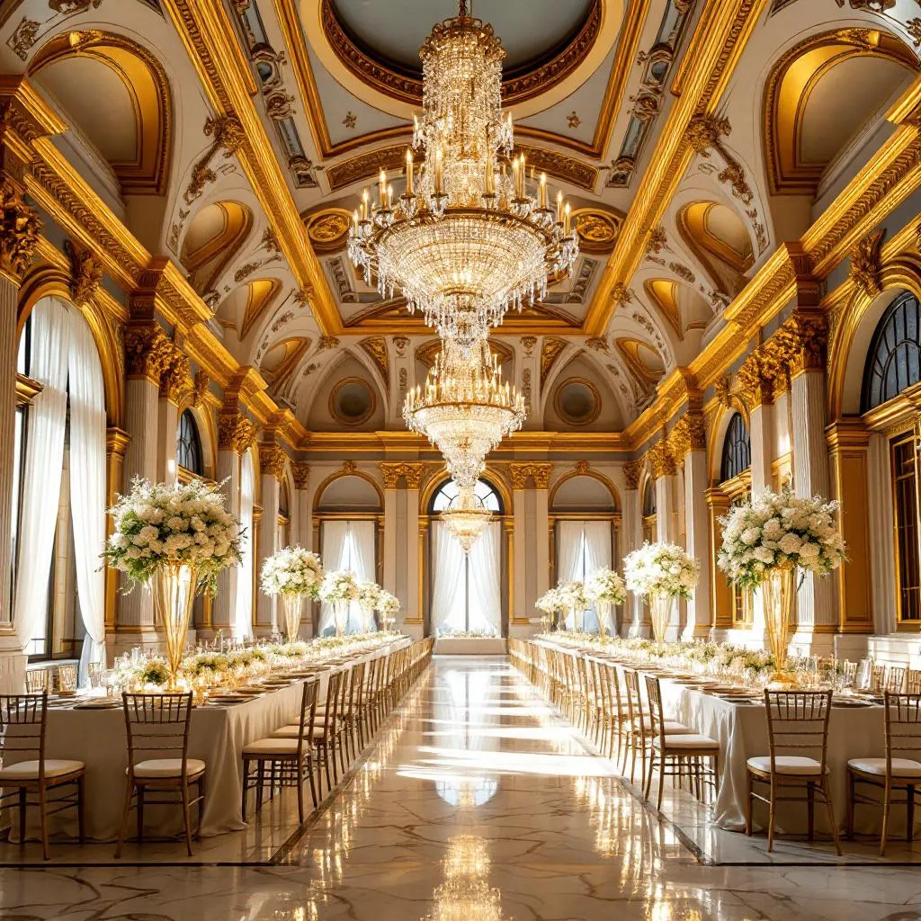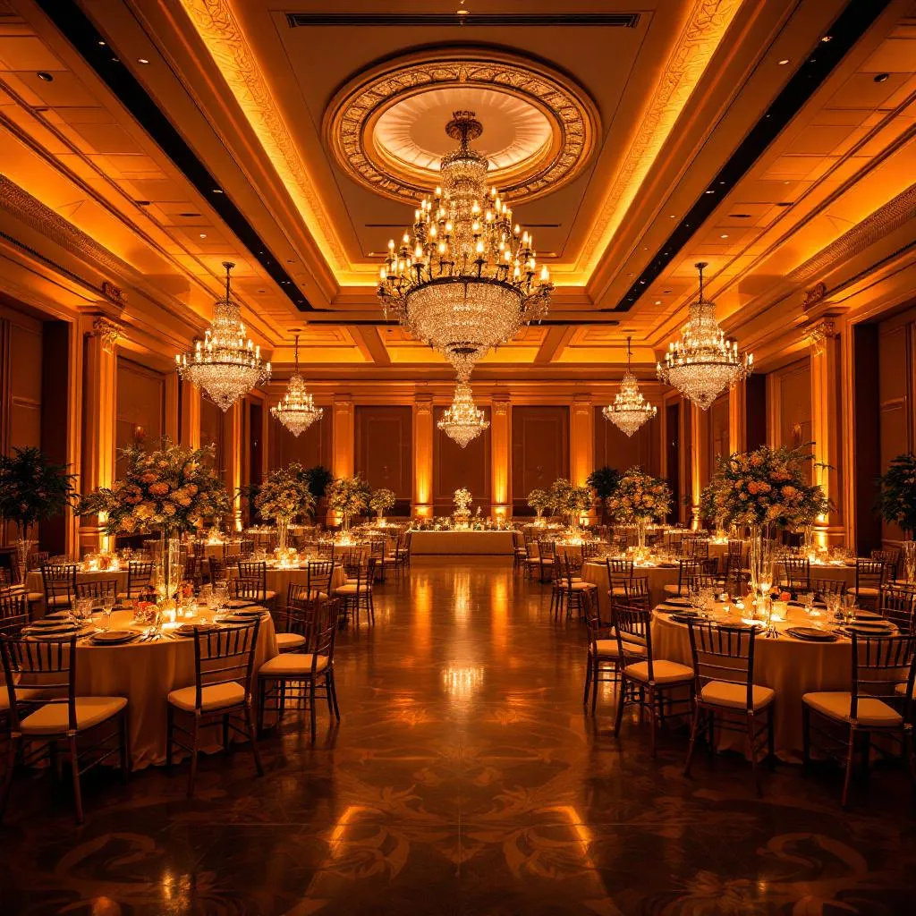 Pick a style like Romantic Elegance or Black Tie Glamour, choose your color palette, and select design elements like draping, lighting, and florals.