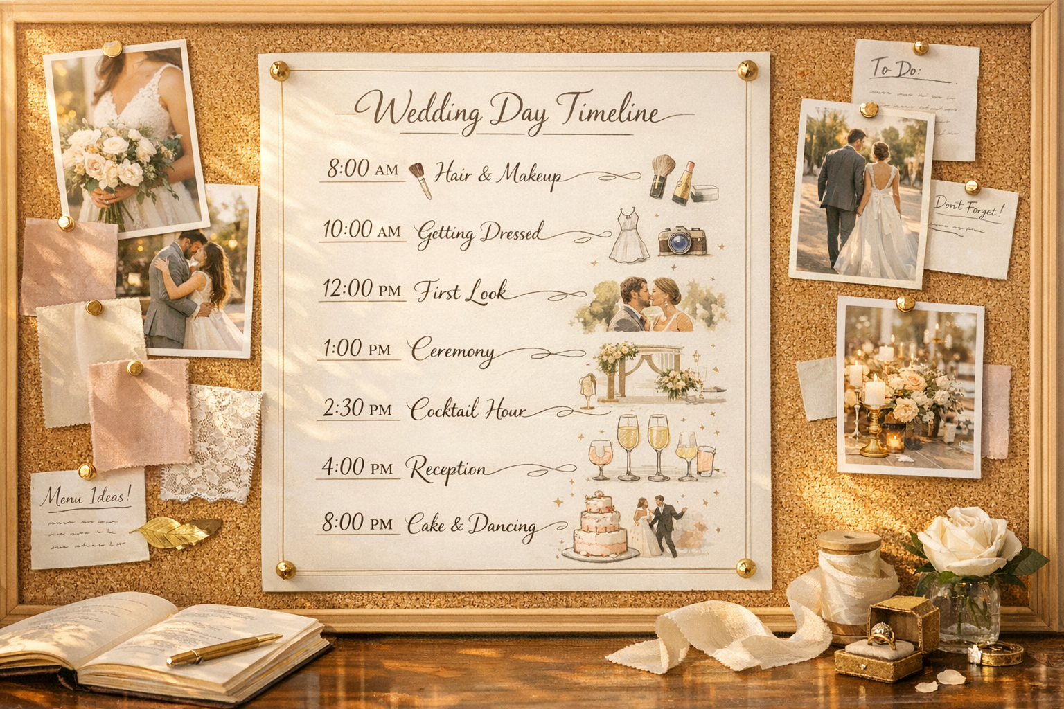 A detailed, Atlanta-specific wedding day timeline and schedule template — from getting ready to last dance. Includes time blocks, common mistakes to avoid, and vendor coordination tips tailored to Atlanta weddings.